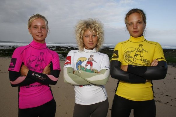 05.09.2009 утром, на отливе, волны были подходящие для проведения женского лонгборда. Народ проснулся, оделся и с флагами и банерами спонсоров вышел на спот. Девушки в ожидании старта разминались и готовились к предстоящей борьбе.