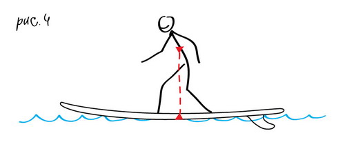 Физический смысл правильного положения стоя ничем не отличается от правильного положения лежа. Надо занять такое место, чтобы доска лежала максимально плоско. рис 4